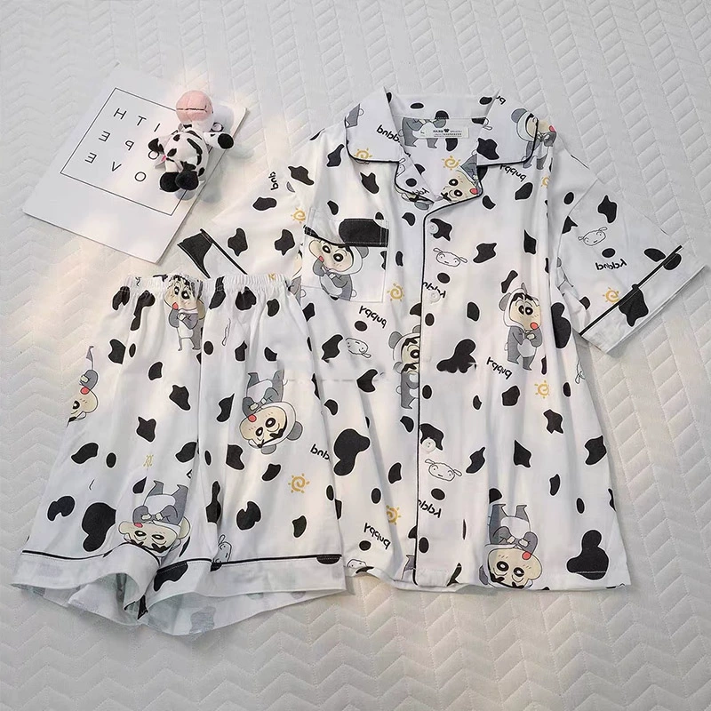 Cartoon cow Crayon Shin-chan pajamas for women summer pure cotton short-sleeved shorts casual students cute can be worn outside the suit