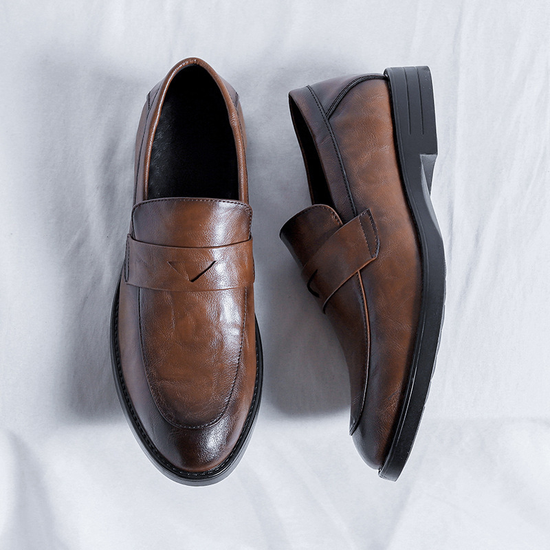 Cross-border Autumn Men’s Leather Shoes Leather Casual British Business Dress Slip-on Lazy Bean Shoes 85671-R