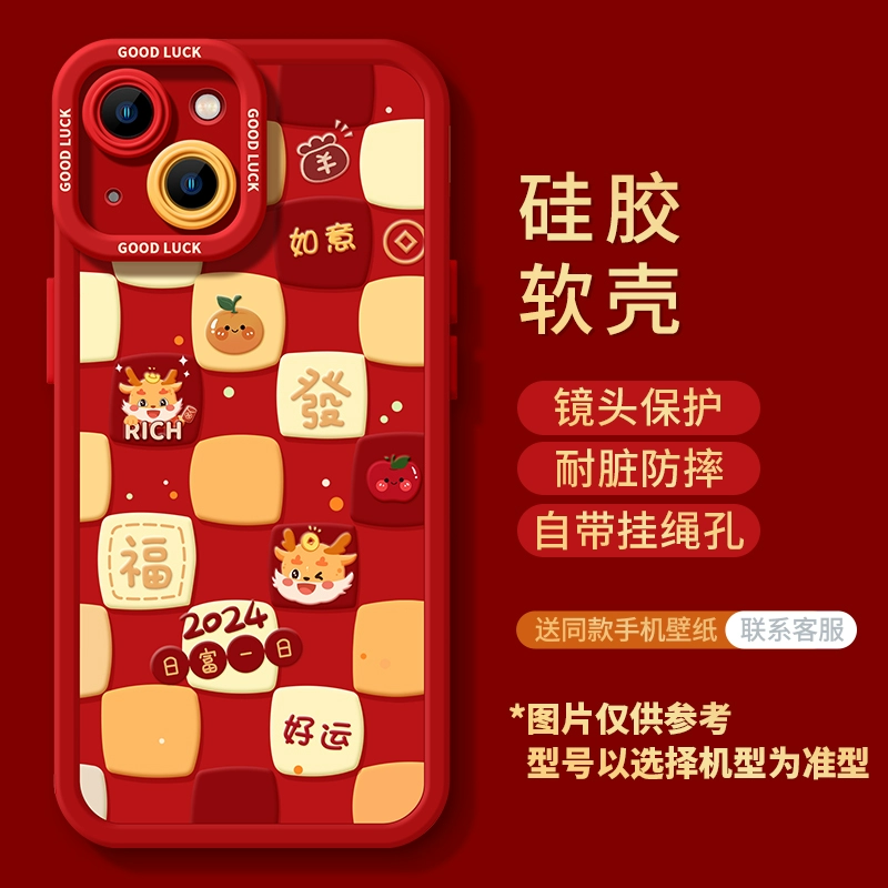 Soft shell cute silicone new year all -inclusive pink apple