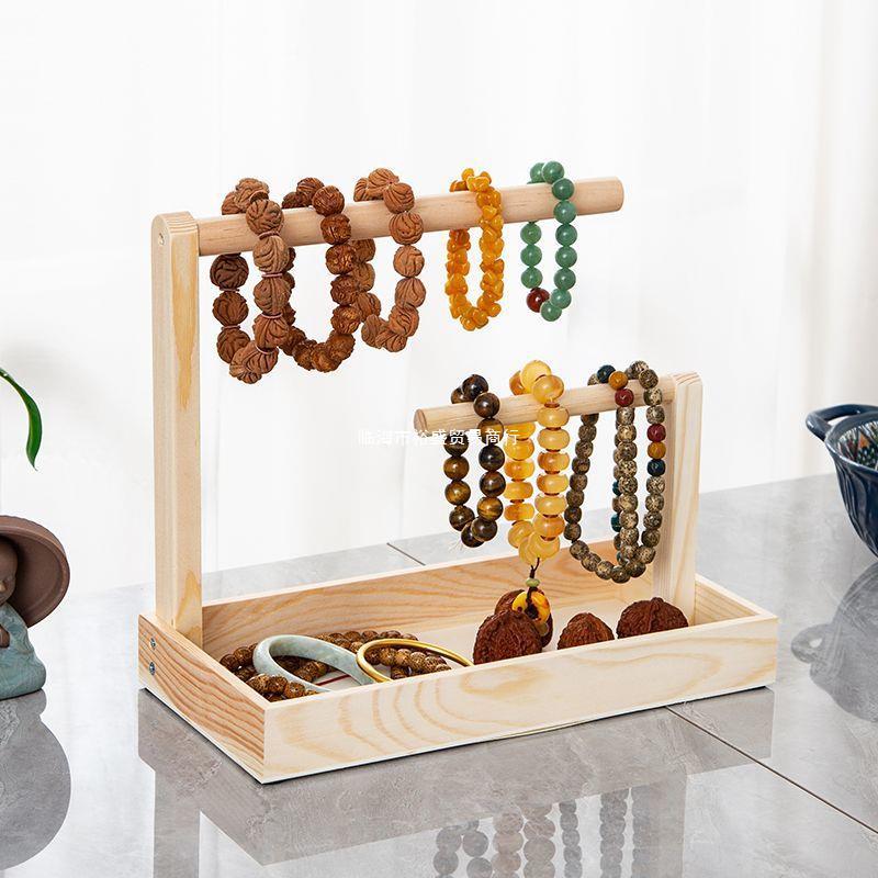 Handstring Storage Cultural Play Display Hanging Rack Solid Wood Bracelet Key Rack Buddha Beads Jewelry Rack Antique Stone Jade Rack