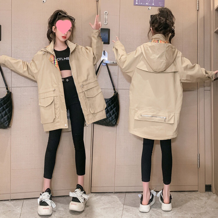 Spring big girls new Korean style big pocket windbreaker coat P79
