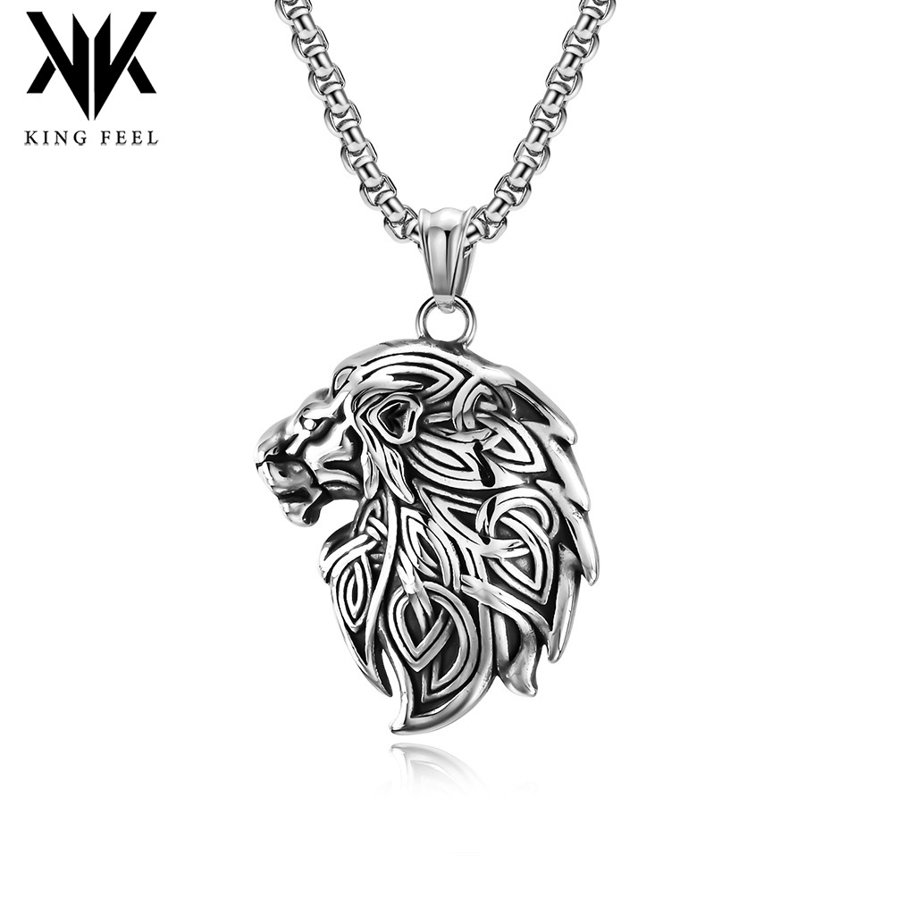 Cross-border European and American retro male lion head titanium steel necklace personality domineering hip-hop literary style men’s accessories pendant