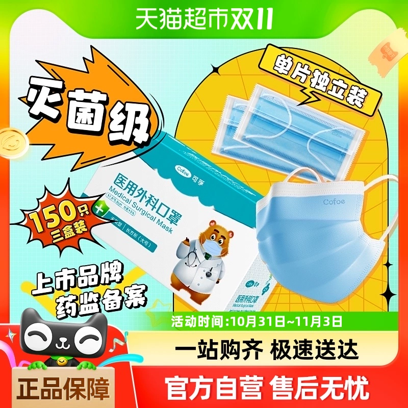 Corfu medical surgical masks sterile 150 pieces individually packaged medical hospital medical three-layer protective cover