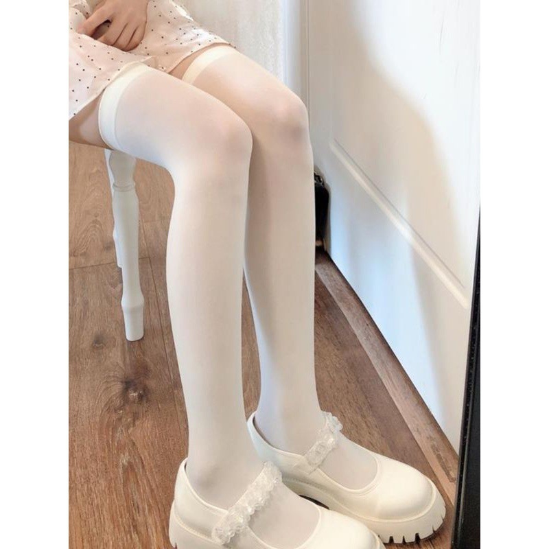 Milk White Over-the-Knee Socks Mid-high Micro-pressure Silk Stockings Women’s Thin Pure Wish Wind Moon Socks Women’s Black Silk Half-cut
