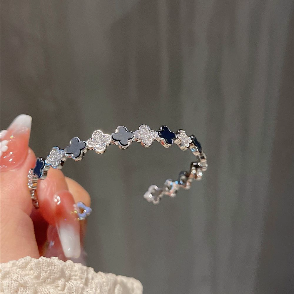 Niche flash diamond bracelet stacked with girls original four-leaf grass