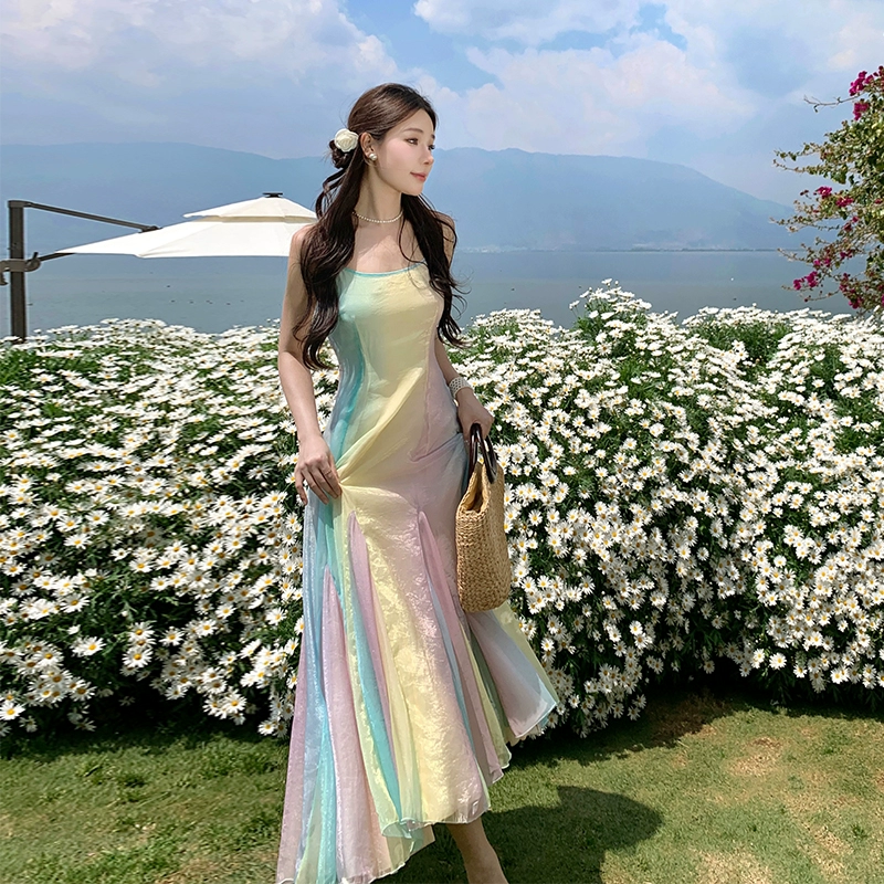 Super fairy summer dress slimming and gentle style suspenders