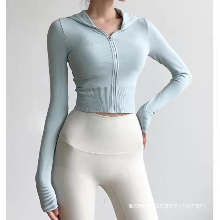 Hooded Sports Top Women’s Tight Slimming Yoga Clothes Quick-drying Breathable Training Fitness Running Long-sleeved Zipper Cardigan