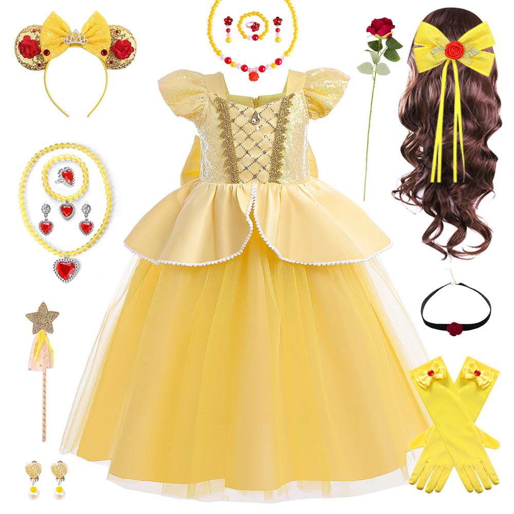 Halloween tutu skirt children’s dress Beauty and Beast real person movie same style dress Princess Bell