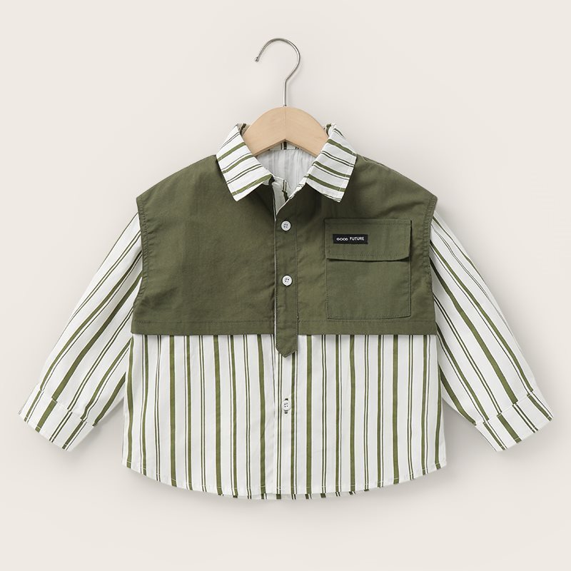 Boys’ Fake Two-Piece Shirt Spring and Autumn New Children’s Clothing Children’s Baby Children’s Shirt Autumn U14378