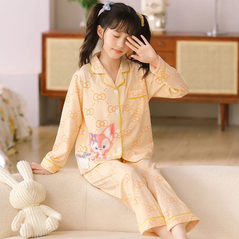 Spring and Autumn new children’s pajamas cartoon girls’ summer cardigan lapel baby long-sleeved trousers homewear suit