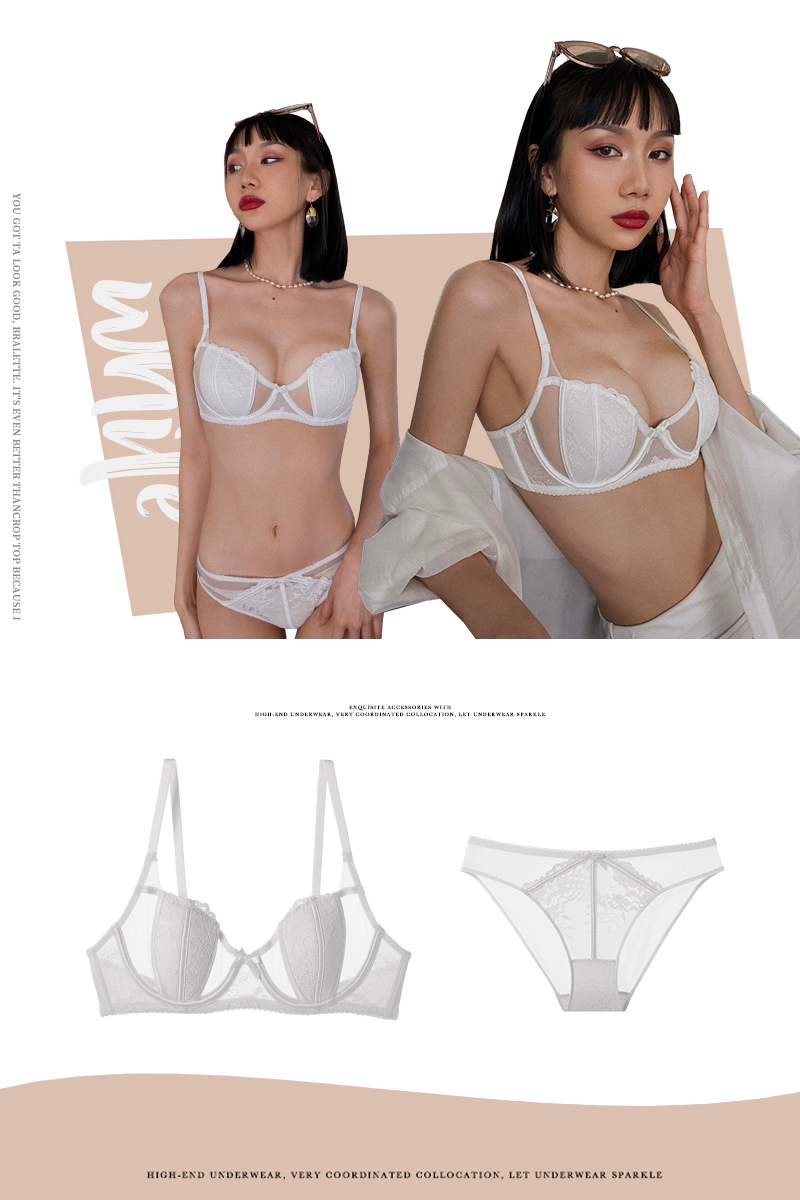 Underwear for women in summer, thin, large breasts, small breasts, gathering and preventing sagging bra white sexy ultra-thin rabbit ear bra