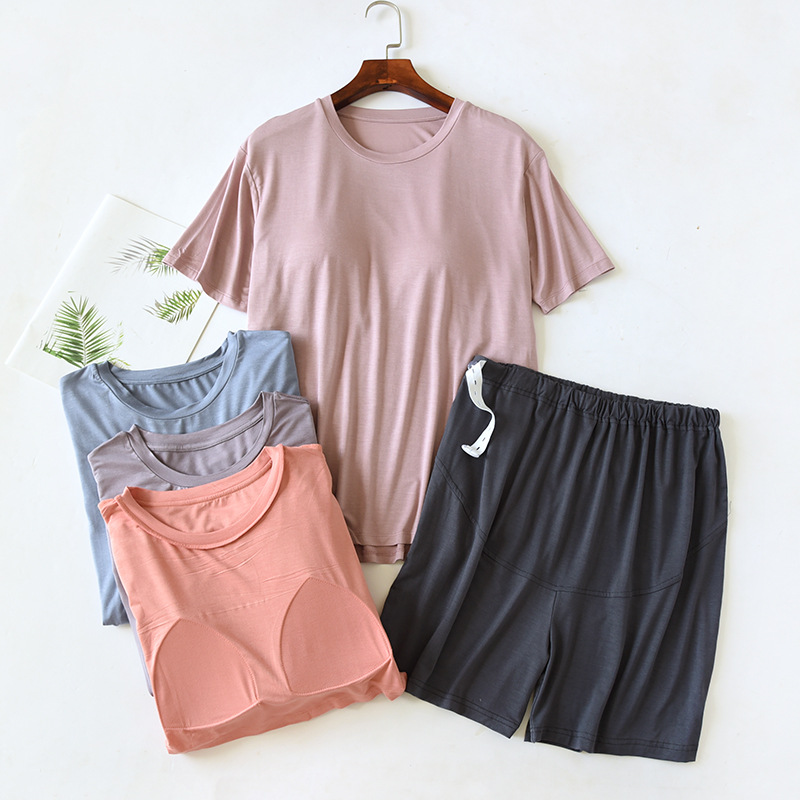 Modal Short-sleeved Shorts with Chest Pad Women’s Summer Thin Adjustable Abdominal Pants Postpartum Nursing Home Clothes