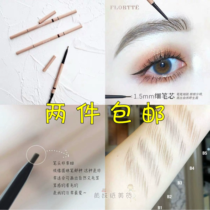 Flortte flower lolia double-ended ultra-fine eyebrow pencil for women waterproof and sweat-proof, long-lasting, non-fading automatic