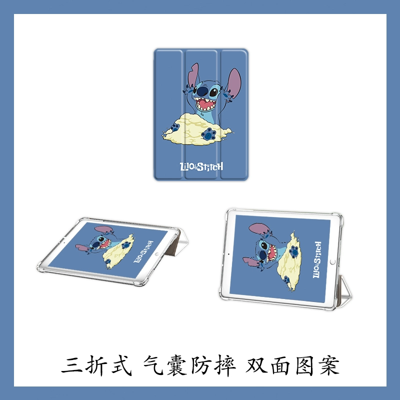 Stitch cute 2020/19/8 new ipad air4/3/2/1 suitable tablet protective case 10.2/9.7 inch three-fold with pen slot pro11 rotating shell apple mini45 leather case 5/6