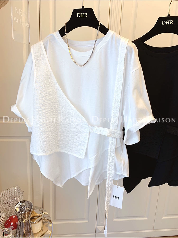 Niche Japanese casual button short-sleeved fake two-piece vest