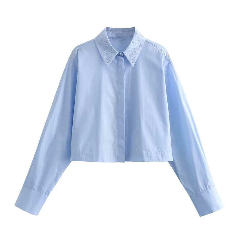 Girls’ Summer New Korean Style Puff Sleeve Shirt Square Collar Bow Diamond-encrusted Trendy Short Top for Big Children
