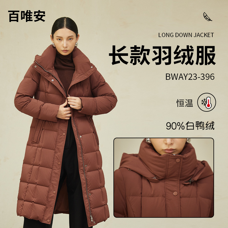 Baiwei’an lightweight hooded down jacket women’s long fashionable warm cotton-padded jacket autumn and winter high-grade top coat