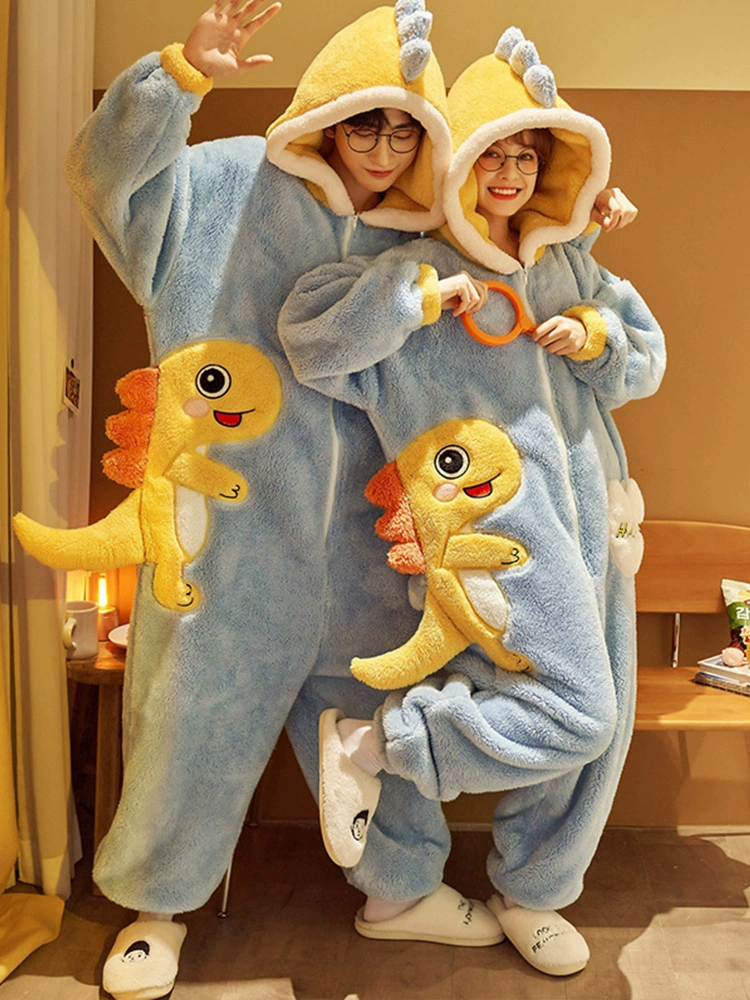 Couple one-piece pajamas for women in winter thickened plus velvet coral velvet dinosaur autumn and winter women’s plush men’s flannel