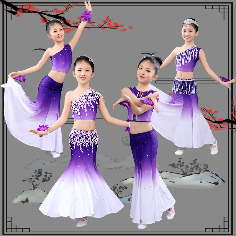 Children’s Dai Dance Performance Performance Costume Performance Costume Children’s Young Children’s Female Peacock Dance Fishtail Skirt South of Colorful Clouds