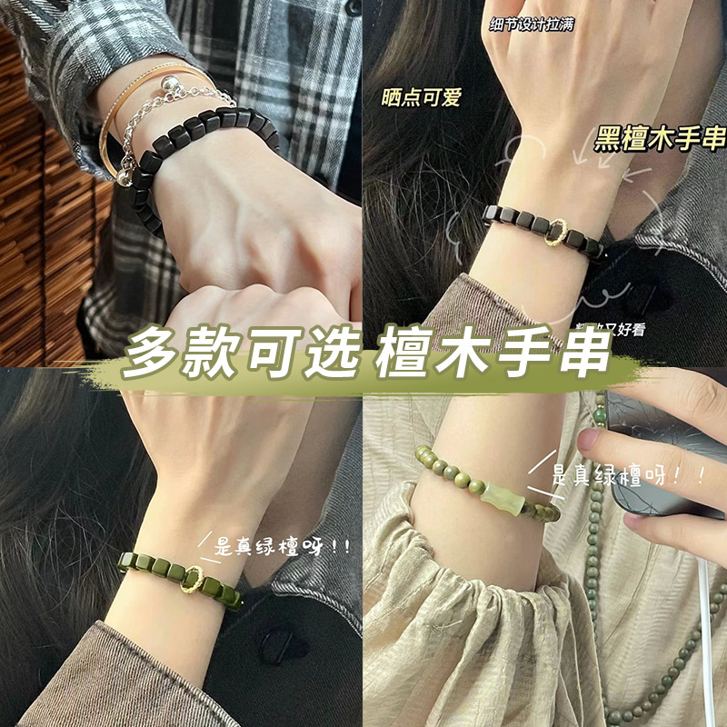 Old Material Green Sandalwood Bracelet Ebony Women’s Student Sandalwood Bracelet Wen Play Li Lianhua Bracelet Peripheral Jewelry