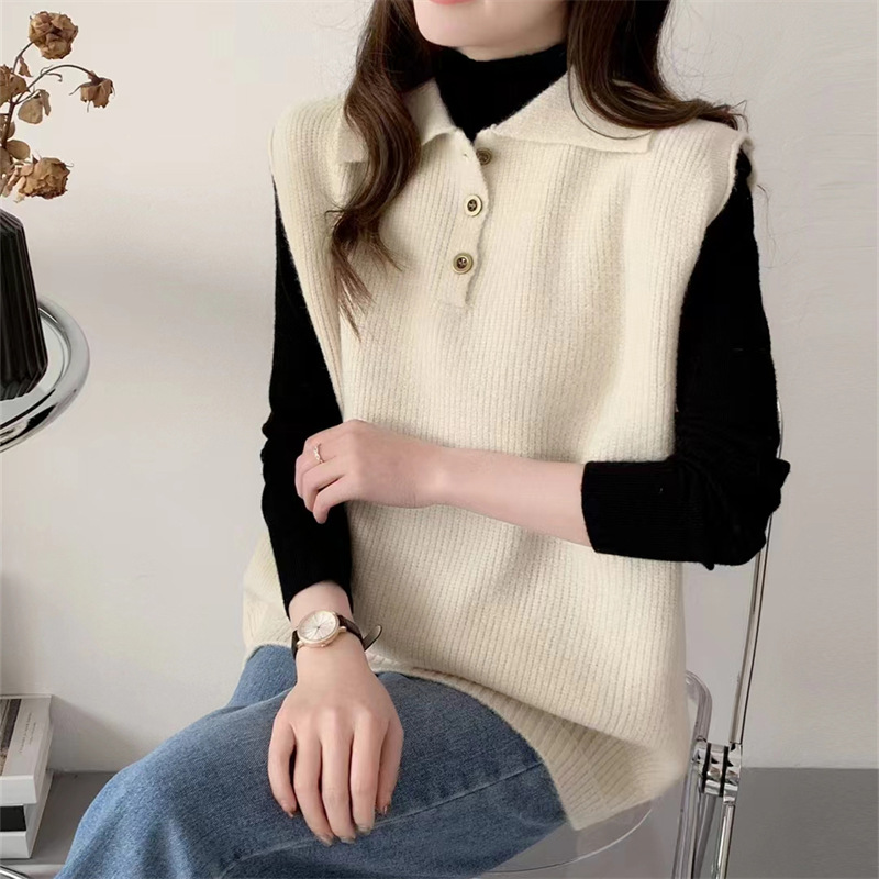 plus size Lapel Knitted Sweater Vest 2024 Fall/Winter New Outfit Pullover Sleeveless Lazy Style Sweater Vest Top