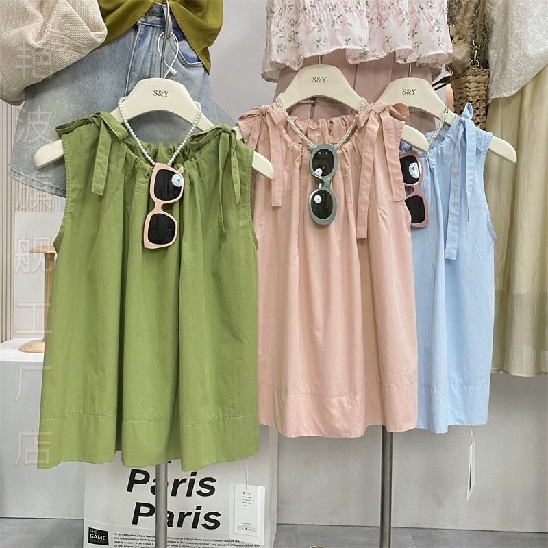 Elegant French Blue Sleeveless Top Women’s Summer Dopamine Wear Chic Doll Shirt 2024 New Taste