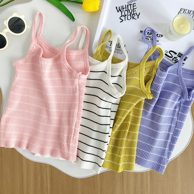Children’s Clothing Children’s Vest Outer Wear 2023 New Style Summer Dress Western Style Baby Girl Striped Small Sling 0158
