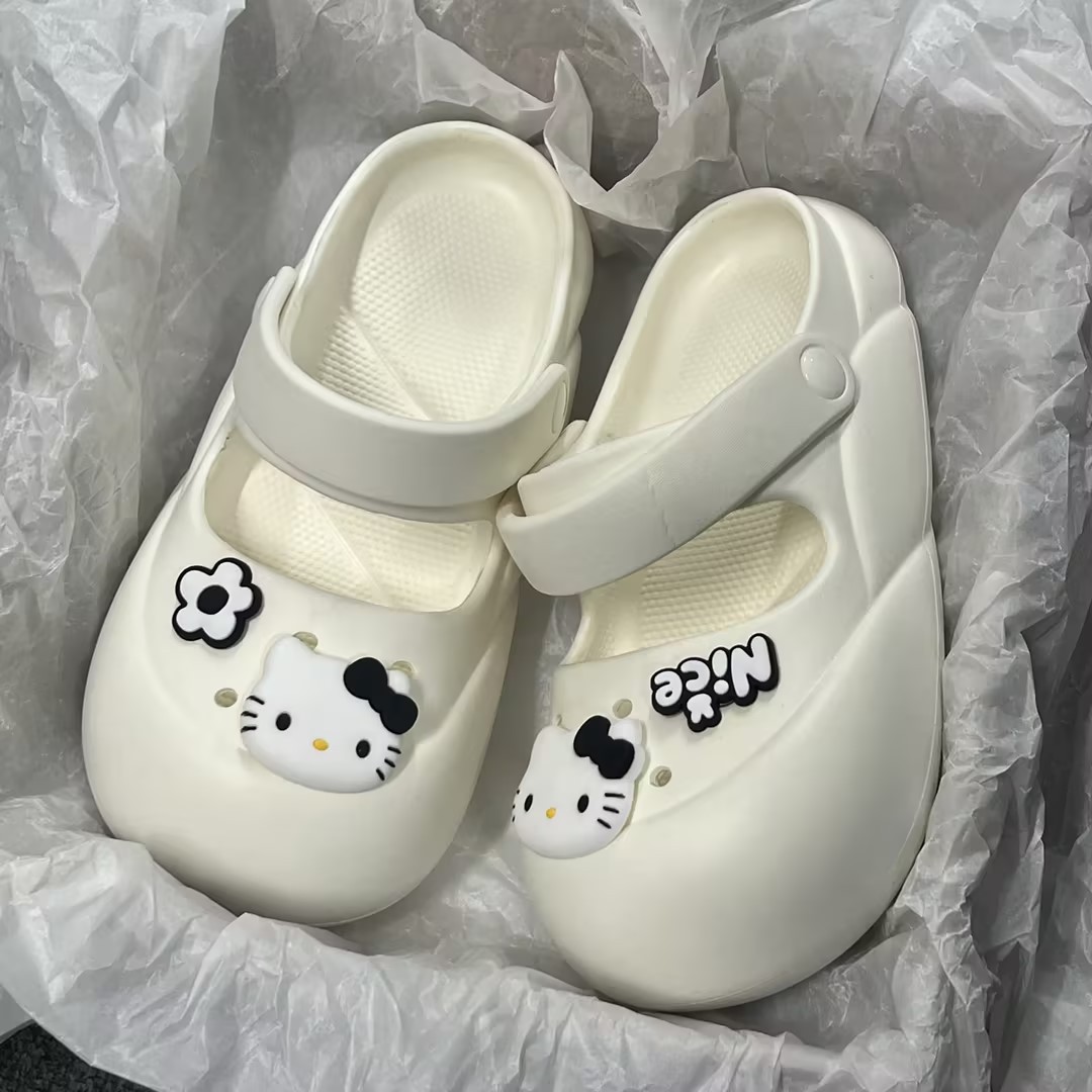 Mary Jane slippers women’s summer outdoor breathable non-slip eva half slippers hole shoes thick bottom slip-on closed toe sandals