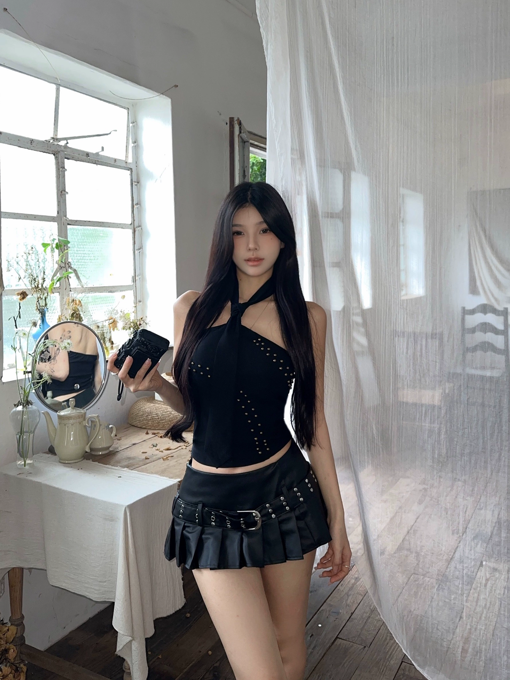 Sweet cool hot girl summer leather skirt two-piece beading set