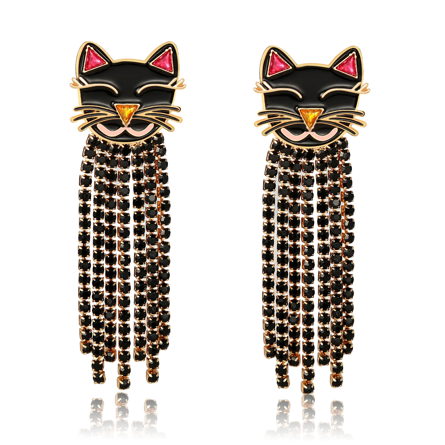 Europe and the United States cross-border Halloween cat earrings creative niche design sense tassel Halloween cat female earrings wholesale