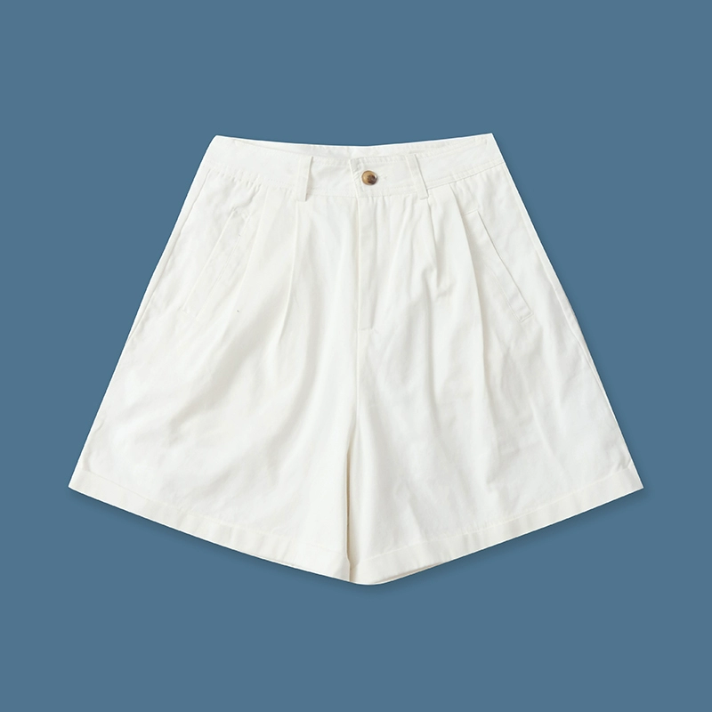 Wide -legged high waist, thin and versatile pure color temperament shorts