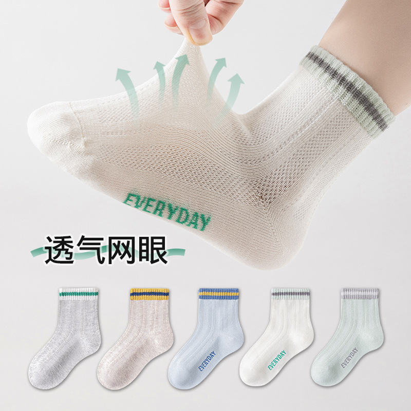 2024 children’s socks spring and summer thin sports cotton socks mesh breathable boys and girls students socks letters tide socks wholesale