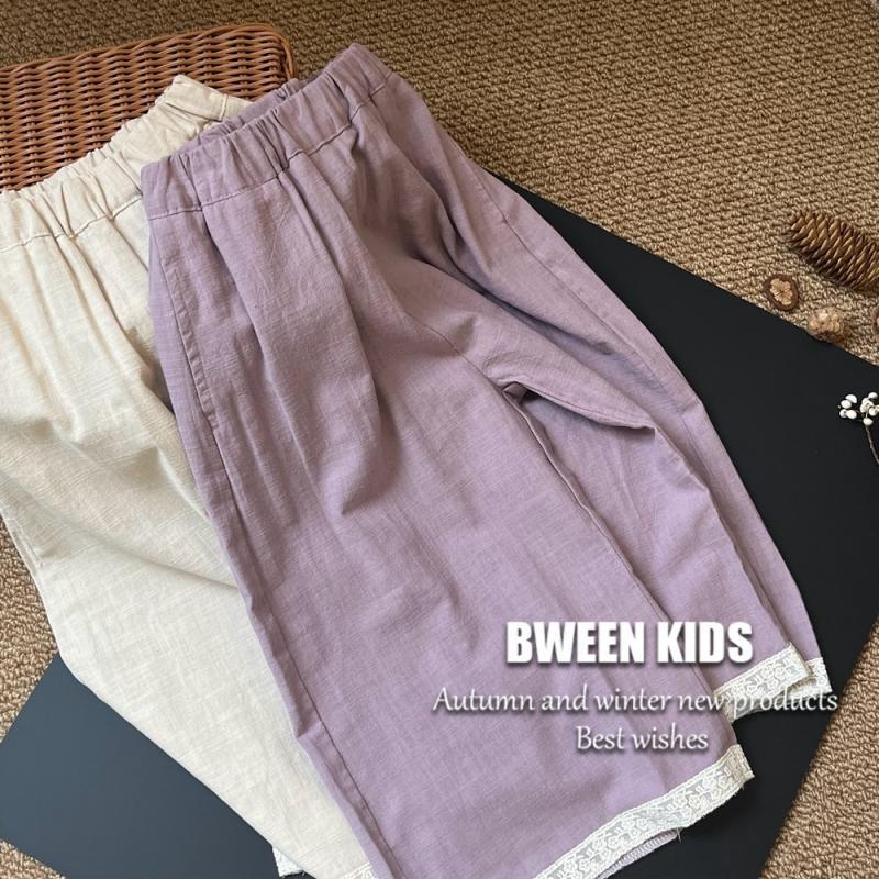 South Korea Children’s Wear Girls’ Trendy Pants Spring New Baby Lace Edge Fashion Korean Style Children’s Loose Wide Leg Pants