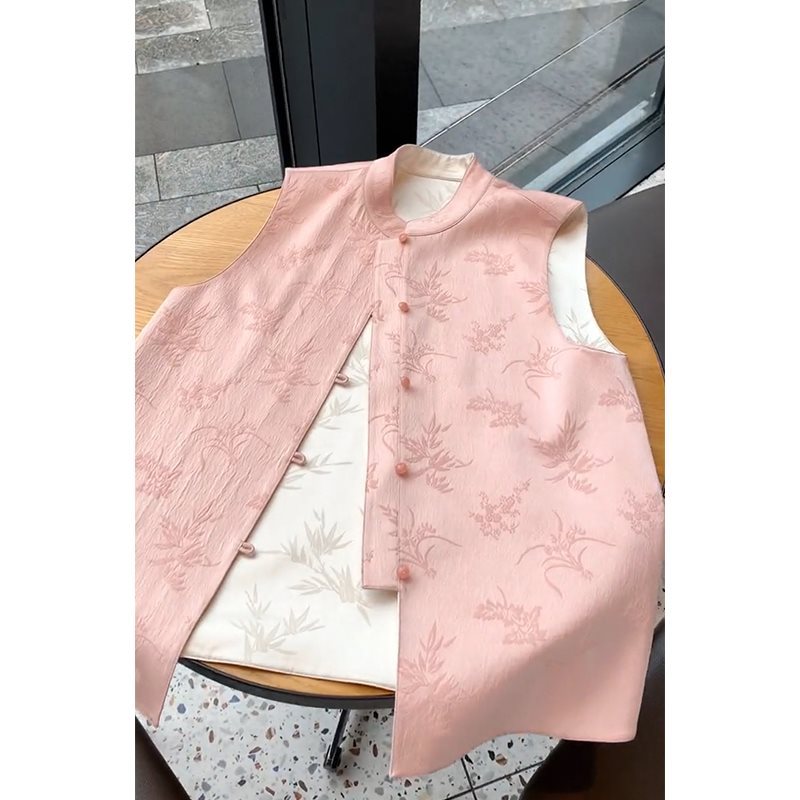 This year’s popular vest is unique and chic, super good-looking, new Chinese style pink double-sided vest for women in early spring