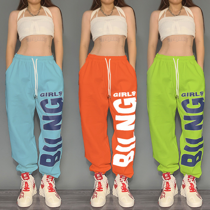 Printed Letter Loose Leg Pants Women’s Sports Hip Hop Street Dance Jazz Table Performance Square Dance Pants Trend