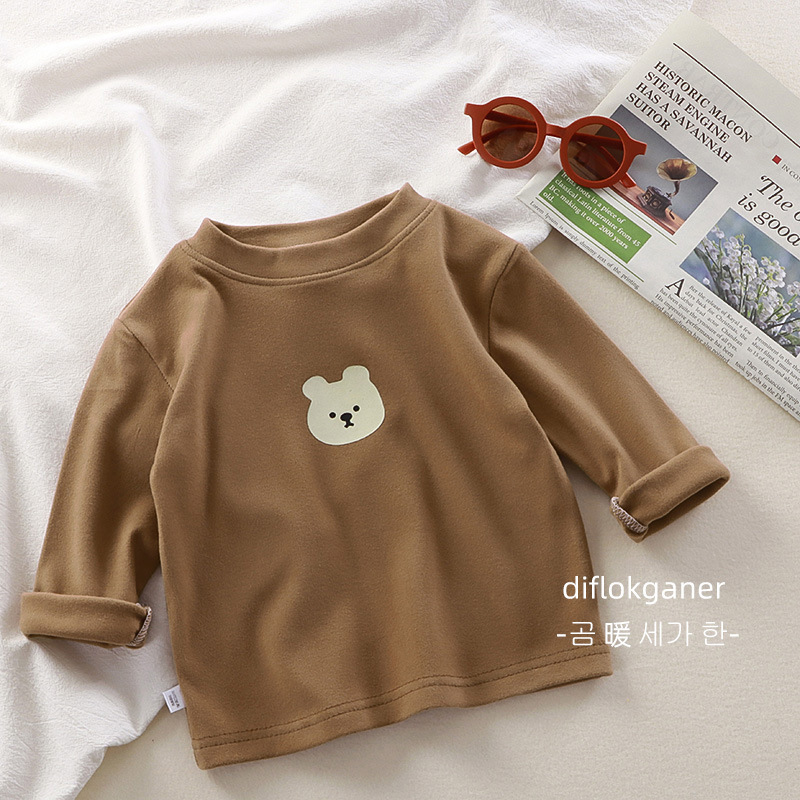 Children’s autumn and winter de Velvet warm boys and girls cartoon Korean style western style long sleeve bottoming shirt inner top sweater
