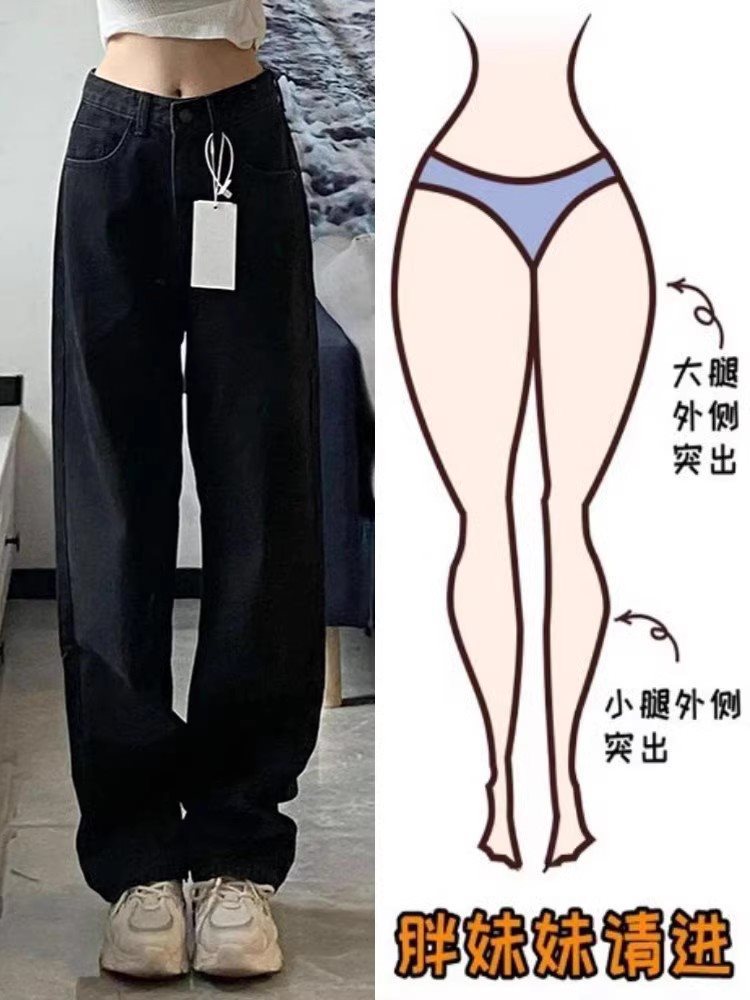 Pear-Shaped Straight-Leg Jeans Women’s Spring and Autumn plus size chubby girl High-Waist Slimming Hip Covering Dragging Wide-Leg Pants
