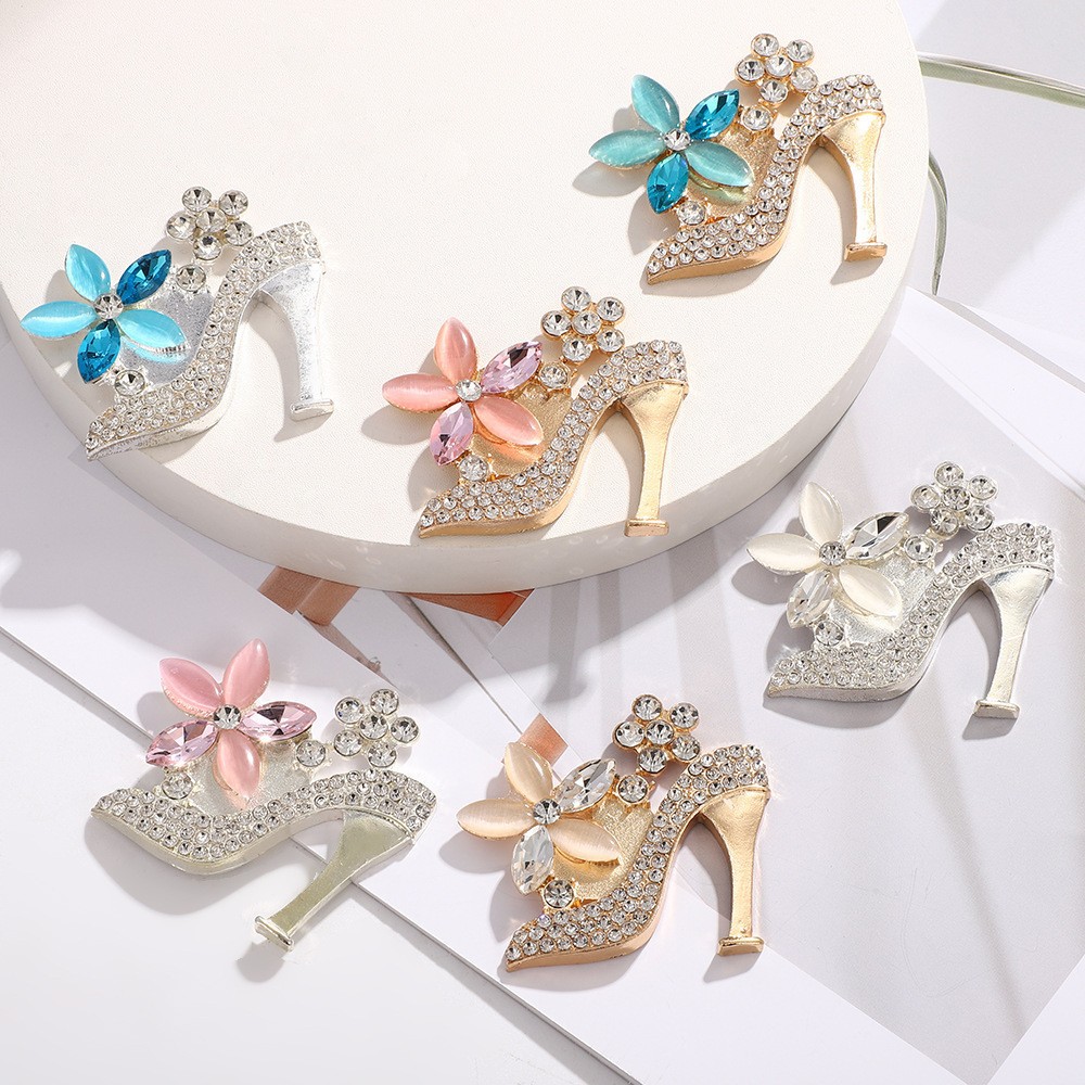 New DIY jewelry rhinestone flower high heels accessories air outlet decoration alloy accessories mobile phone shell material