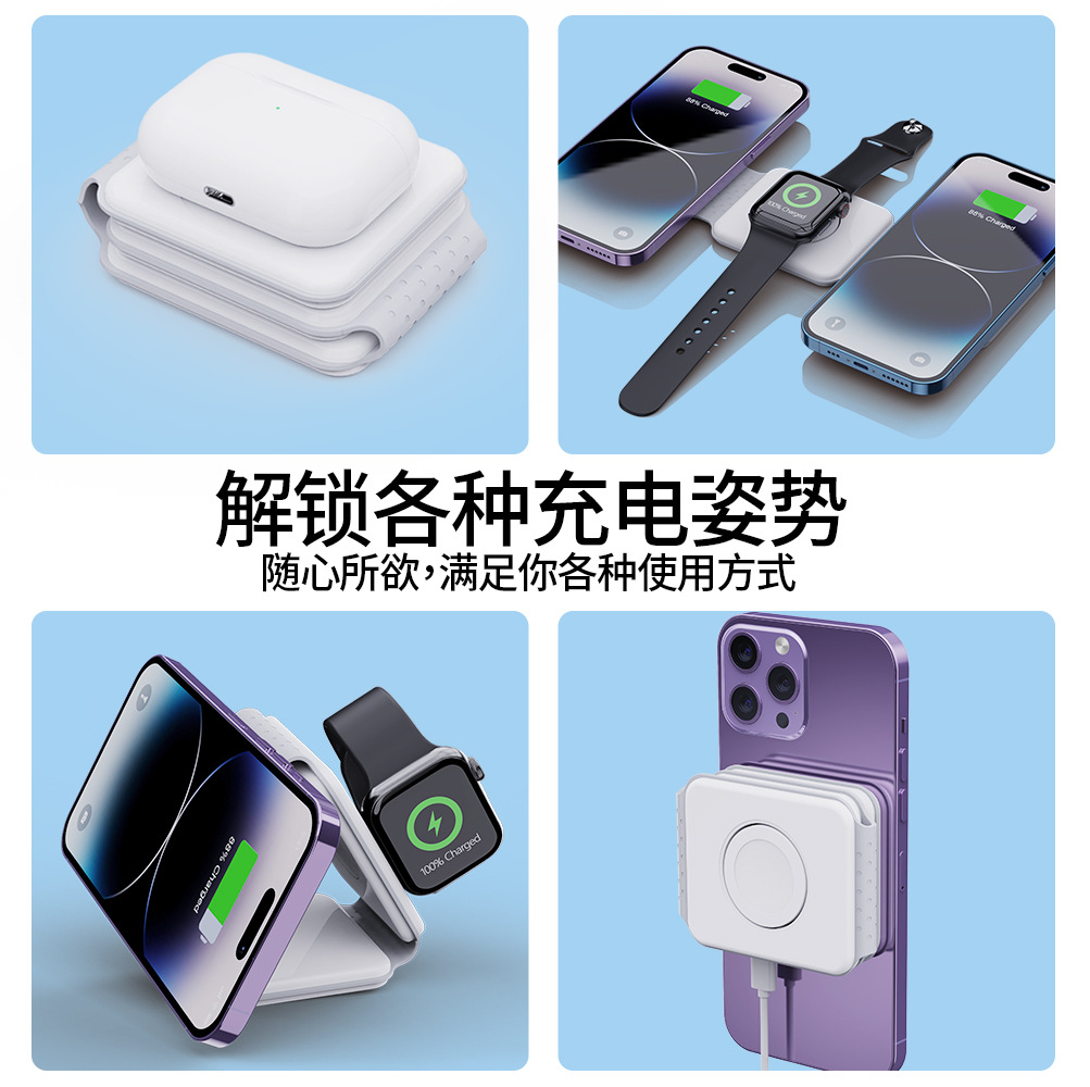 Cross-border new third generation P14 fast charging folding magnetic 15W three-in-one wireless charger for Apple 14