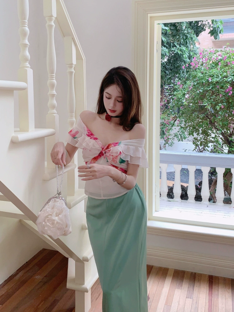 Spring and Summer New Chiffon Top Small Drawstring Camisole Long Skirt Two-piece Suit Women’s Sunscreen Clothing Women’s Outer Wear