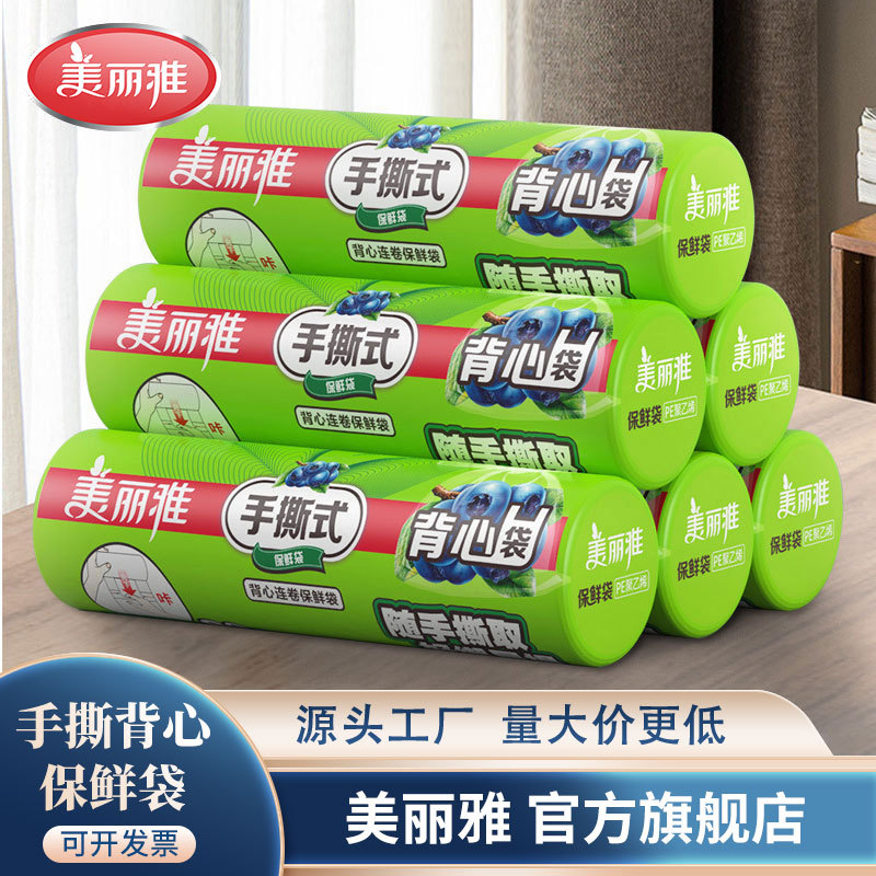 Meiliya hand-torn vest fresh-keeping bag refrigerator storage microwave oven heating PE material department store wholesale