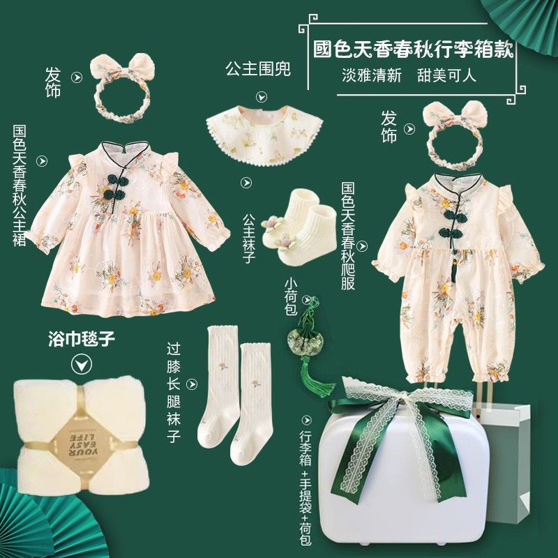 Summer Guofeng Cheongsam Newborn Children Meeting Gift Box Female Treasure Small Fresh Green Department Newborn Baby Full Moon Gift