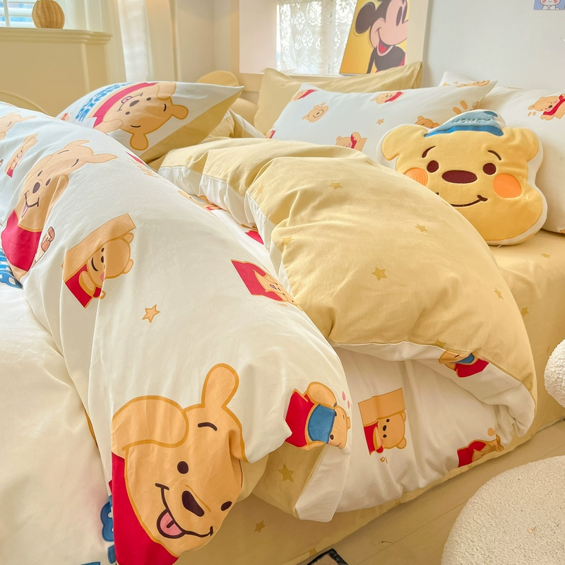 Anime cartoon 100 pure cotton four -piece all -cotton sheet quilting beds, beds, student dormitory bed three -piece set