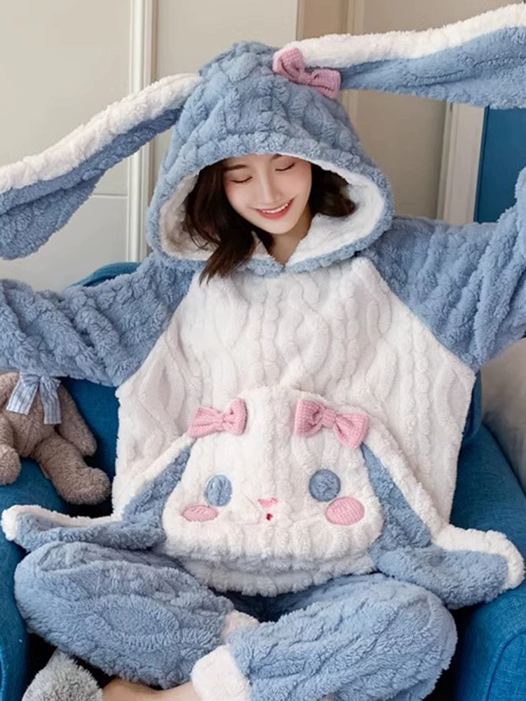 Autumn and winter pajamas Female new jade dog coral velvet, thickened flanging flaw hooded home service set