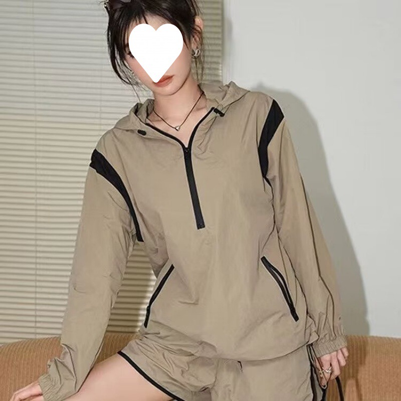Extras size 300kg fat MM European goods station hooded sunscreen suit women’s new casual sports shorts two-piece set