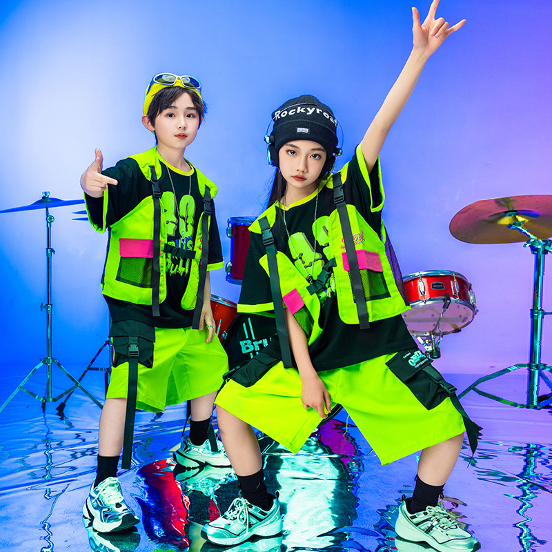 Boys’ hip-hop set children’s hip-hop cool waistcoat hiphop trendy brand children’s clothing girls’ jazz dance performance costume