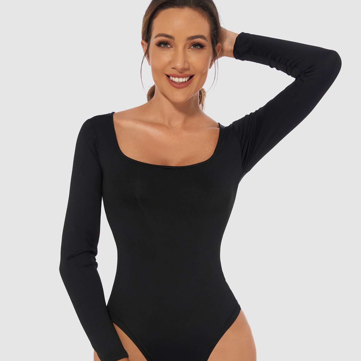 Slim-fit Square Collar Bottoming Shirt plus size Women’s Women’s Pants T-shirt Long-sleeved jumpsuit Women’s Top