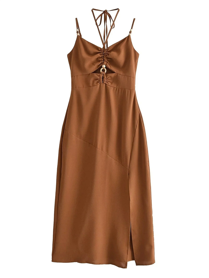 New Ins Vacation Style Children’s Wear 2023 Summer Girls’ Backless Dress Women’s Treasure Style Strap Princess Long Dress