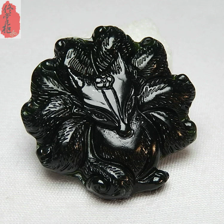 Nine-tailed fox jade pendant for women natural dark green jade ink jade animal pendant for men and women student jade necklace pendant jade pendant