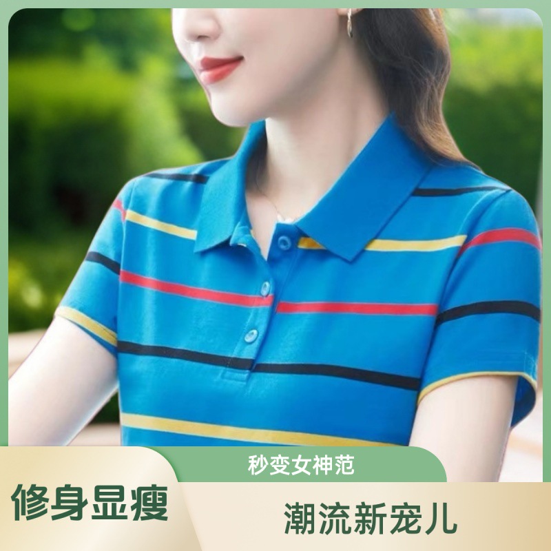 Lapel Slim-fit T-shirt Polo Shirt Women’s Summer Western Style Middle-aged and Elderly Fashionable Casual Slim-fit All-match Half-sleeve Top
